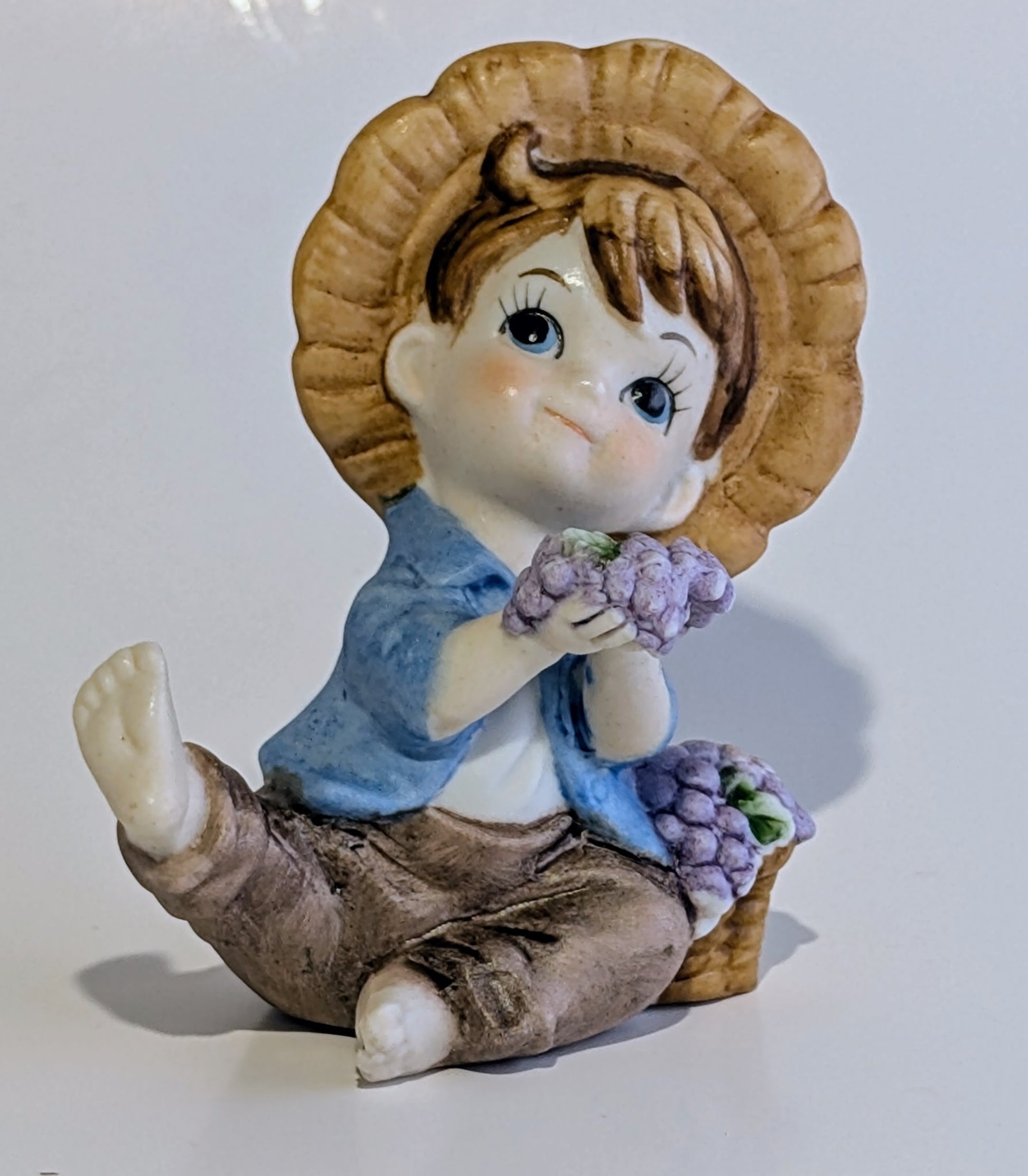 Vintage ceramic child figurine with grapes
